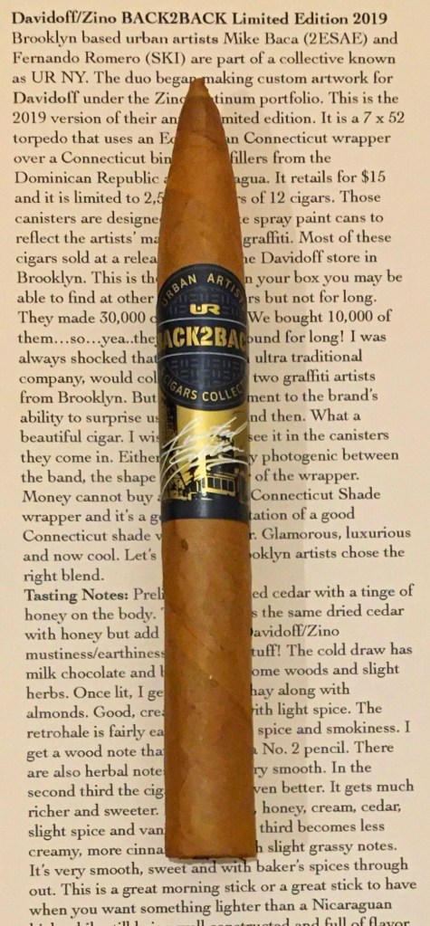 Now this is a decent sized torpedo coming in at 7″ x 52. Pre-light scent and the cold draw is of sweet barnyard with very light resistance.