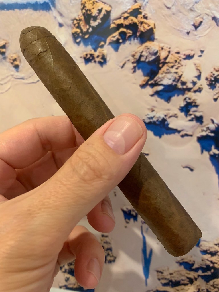 This cigar is an exploration into a new test blend, and it does seem a bit rough around the edges. Notably, both the cap and foot appear to be coming apart slightly, with a slight bend at the foot.
